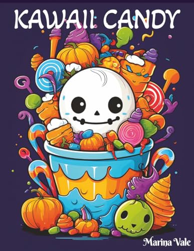 Kawaii Candy Halloween Coloring Book, 105 unique designs: Adorable Ghosts, Candy, and Cute Creatures for a Fun, Creative, and Relaxing Halloween Experience! 8.5x11 inches, gifts for off screen time, travel and leisure time.