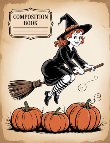Cute Vintage Witch Halloween Notebook: 120 Pages, with Cartoon Cover Design, ideal for School Notes, Creative Writing, Ideas, Girls, Writers, Holiday ... Notes, Creative Writing, Ideas, Girls, Writer