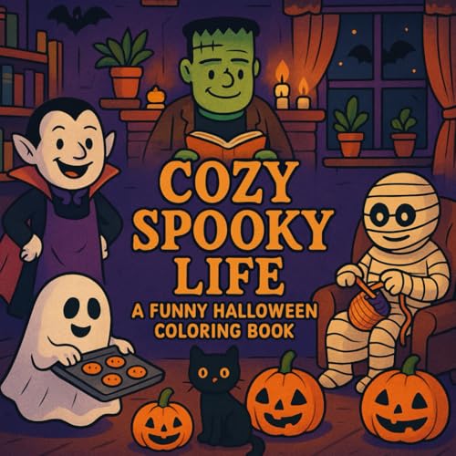 Cozy Spooky Life - A Funny Halloween Coloring Book: Cartoon-Style Halloween Characters in Everyday Cozy Scenes – 50 Fun Pages to Color