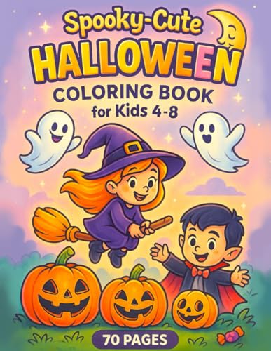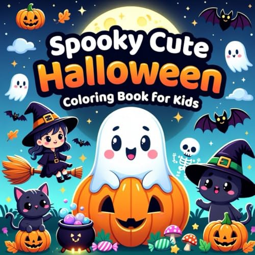 Cute & Spooky Halloween Coloring Book for Kids: Adorable Witches, Pumpkins, Ghosts & Friendly Monsters — Fun Cartoon Coloring Pages for Ages 4-12