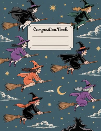 Cute Vintage Witch Halloween Notebook: 120 Pages, with Cartoon Cover Design, designed for Ideas, School Notes, Journaling, Teens, Writers, Women, ... Ideas, School Notes, Journaling, Teens, Writ