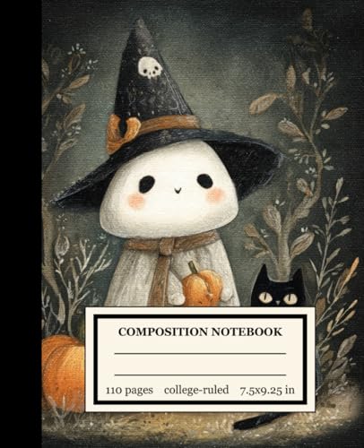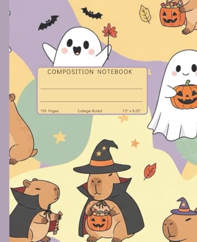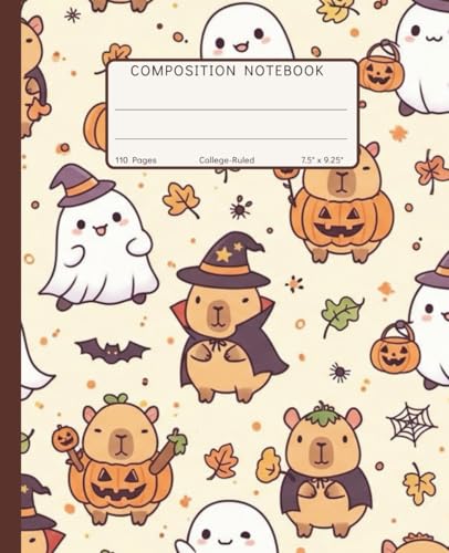 Composition Notebook College Ruled: Cute Kawaii Capybara Halloween with Ghosts, Pumpkins & Autumn Leaves | Fun Spooky Animal Lover Cartoon Journal ... & Everyday Writing (110 Pages, 7.5x9.25 in)