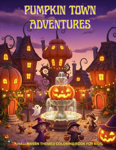 Pumpkin Town Adventures: A Fun Halloween Coloring Book with Cute Pumpkin Houses, Trick-or-Treating Kids, and Whimsical Cartoon Scenes