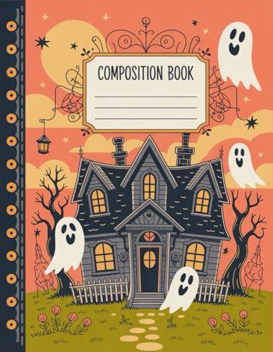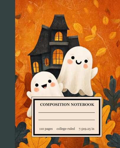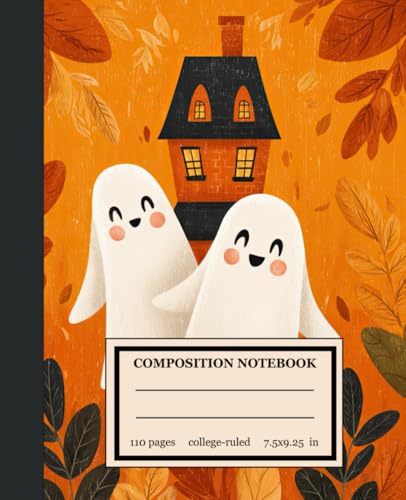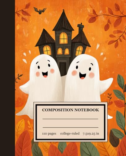 A Composition Book: Cute Cartoon Ghosts Illustration | Halloween Theme | College Ruled For School Notes, Daily Thoughts, and Creative Scribbles | 110 Pages 7.5" X 9.25"
