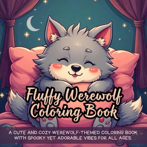 Fluffy Werewolf Coloring Book: fluffy werewolf cozy spooky coloring for adults, cute Halloween werewolf coloring book for kids, sleepy cozy wolf ... fun, cartoon spooky wolf coloring book