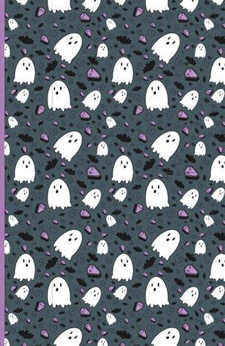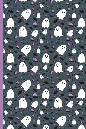 Cute Ghost Themed Notebook: Kawaii Spooky Journal with Cartoon Ghosts, Bats & Coffins; 6x9” Lined Paperback; Fun Halloween Gift for Kids, Teens, Girls, and Ghost Lovers