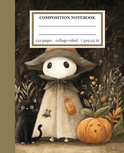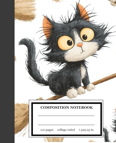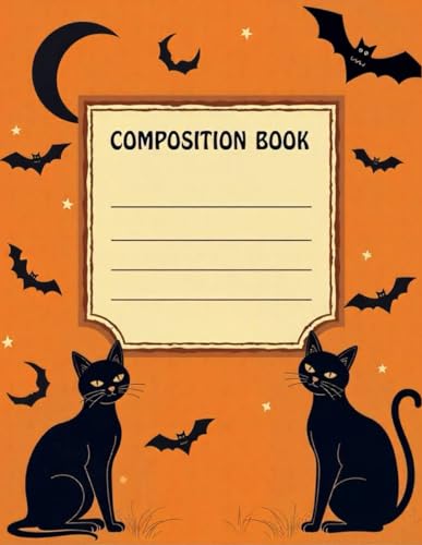 A Composition Book: Cute Cartoon Cats Illustration | Halloween Theme | College Ruled For School Notes, Daily Thoughts, and Creative Scribbles | 110 Pages 7.5" X 9.25"
