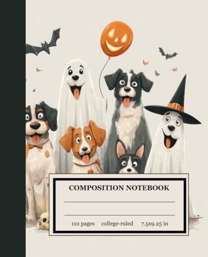 A Composition Book: Cute Cartoon Dogs Illustration | Halloween Theme | College Ruled For School Notes, Daily Thoughts, and Creative Scribbles | 110 Pages 7.5" X 9.25"