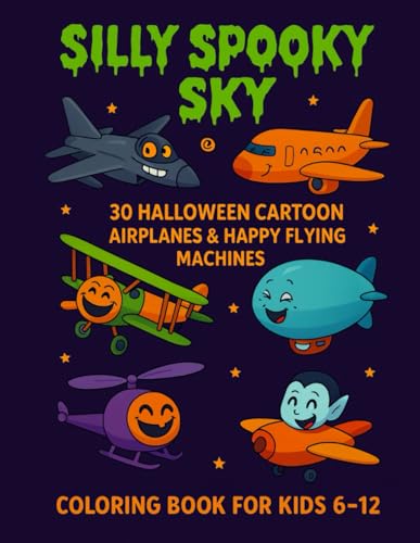 Silly Spooky Sky: 30 Halloween Cartoon Airplanes & Happy Flying Machines Coloring Book for Kids 6–12