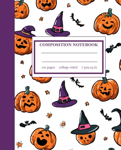 A Composition Book: Cute Cartoon Pumpkins Illustration | Halloween Theme | College Ruled For School Notes, Daily Thoughts, and Creative Scribbles | 110 Pages 7.5" X 9.25"