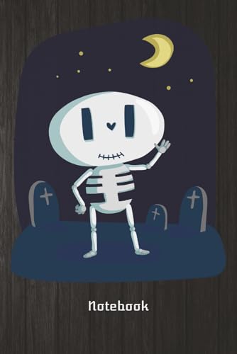 Notebook: Halloween themed 6 x 9 inches (15.24 cm x 22.86 cm) notebook - Skeleton cartoon on black background - 110 college ruled pages