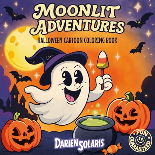 Moonlit Adventures: Halloween Cartoon Coloring Book for Kids, Teens and Adults | Spooky Cute Ghosts, Pumpkins, Bats and Monsters for Fun and Relaxation