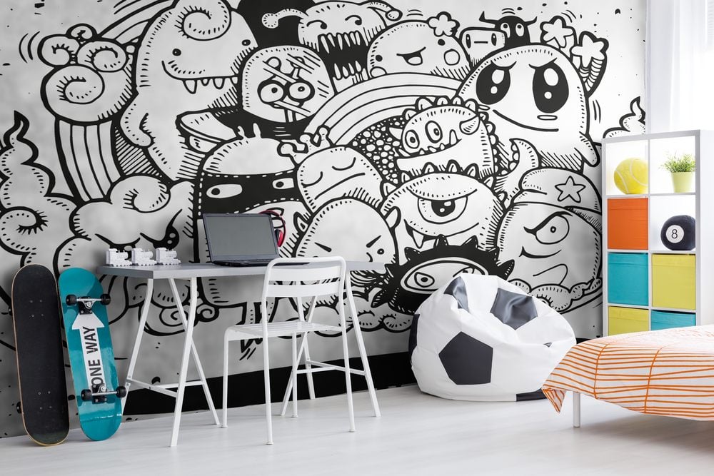 Fototapet -Angry cartoon monsterHand drawn Crazy doodle Monster group Halloween conceptdrawing styleVector - Tonårsrum - Scandiwall - Fantasy