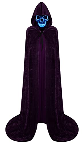 BIGXIAN Long Hooded Cloak Velvet Cape Witch Costume Halloween Costumes for Women Men (Purple, Medium)