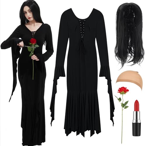 UIMLK Halloween Costumes for Women Vintage Gothic Addams Family Morticia Addams Dress Outfit,S