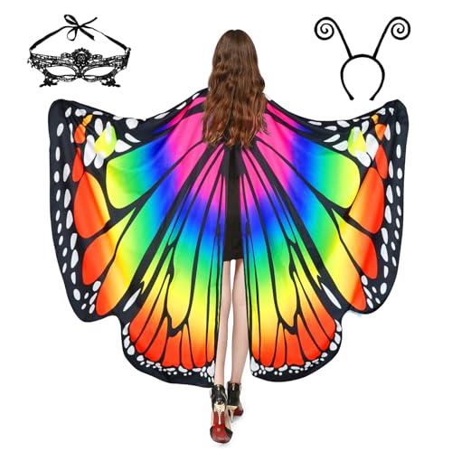 Halloween Costumes for Women Adult Butterfly Costumes Wing Cape Shawl 3Pcs with Lace Mask and Black Velvet Antenna Headband