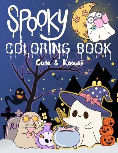 Spooky Coloring Book: For Adults and Teens Cute Kawaii 50 Bold and Easy Fun Adorable Creepy Ghost Wearing Halloween Costumes
