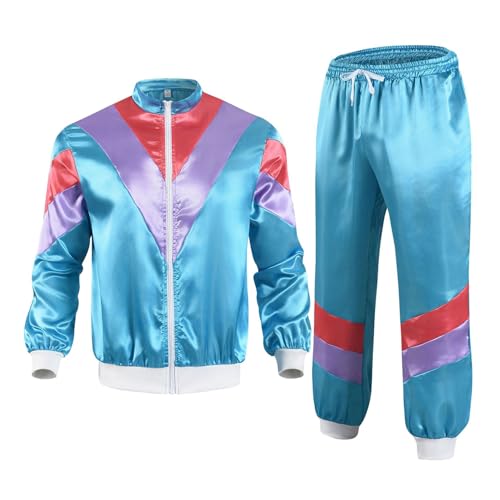 RUNQHUI Dam 80-tal disco dräkt retro träningsoverall jacka + joggingbyxor discodräkt dans karneval halloween S-XXL himmelsblå M