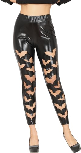FIESTAS GUIRCA | Leggins Simil läder med svarta fladdermöss (38-40/M) - Kostymtillbehör för vuxna kvinnor - idealisk textil för halloween och kostymfester - svart