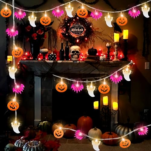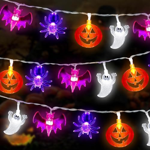 Qunkun Halloween Deko Lichter, Halloween Light Garlands, 7,5 m 40 pumpor, fladdermöss, spöken, spindlar (10 vardera), Halloween stringljus för Weihnachten Halloween-fest