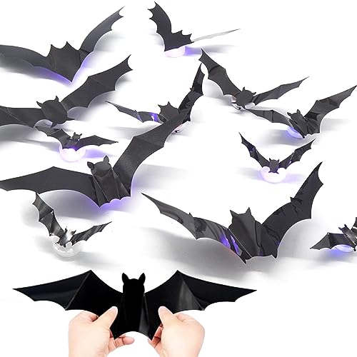 DIYDEC 12 st hängande halloween-fladdermöss, flygande halloween-fladdermus, hängande dekorationer med lysande ögon, halloween-dekor för utomhusbruk, gårdsfest, dekoration, tillbehör