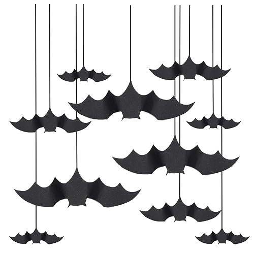 AKH® Halloween hängande fladdermöss dekorationer | paket med 10 | dörrsträngar takpapper fladdermöss dekorationer för halloween | Läskig fladdermus girlang med svart snöre | fladdermus tema halloween