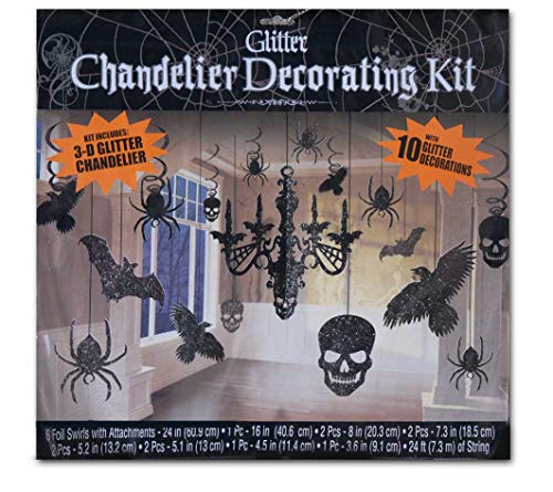 HEITMANN DECO Halloween takhängare – svart glittrande dekoration – spindlar, dödskalle, fladdermöss, korp, ljuskrona