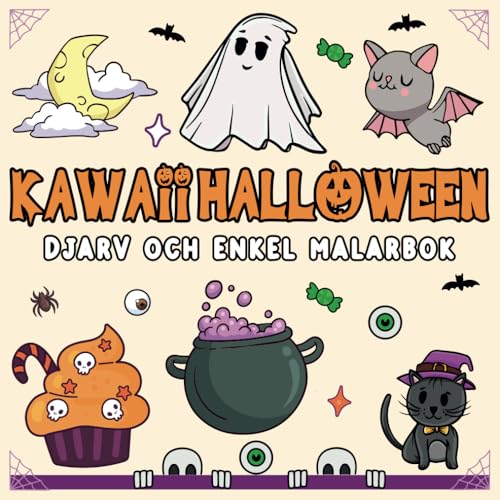 kawaii halloween djärv och enkel målarbok: stora och enkla, söta halloween färgbok för barn och vuxna med kawaii-spöken, fladdermöss, pumpor, godis och mer