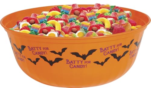 FIESTAS GUIRCA | Orange skål med fladdermöss (27 cm) - Återanvändbar bordsdekoration för Halloween-fester och fester - Perfekt för temaevenemang och skräckfester - Orange