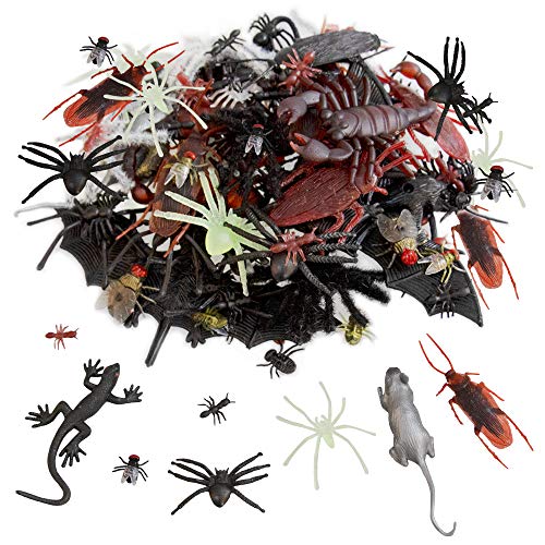 Kalolary 150 stycken svart plast spindlar skalbagge halloween stråkleksaker, realistiska falska insekter råttor fladdermöss kackerlackor, barn halloween fest dekoration tjänster