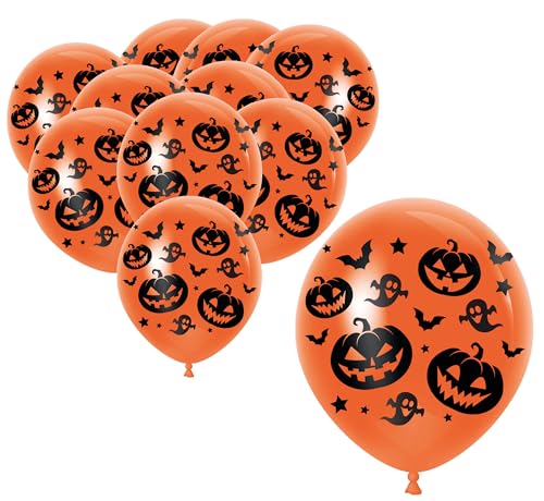 FIESTAS GUIRCA | 10 pumpa ballonger (30 cm) - halloween- och kostymfestdekorationer - perfekt för fester med spöken, fladdermöss och temaevenemang - orange