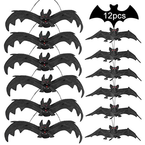 Bluelves Halloween fladdermöss, 12 stycken halloween fladdermöss dekoration, realistiskt utseende spöke hängande fladdermus spöke gummi halloween dekoration för bästa halloween festdekoration