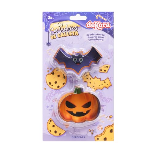 dekora - Halloween Kakskärare Set - 2 Kexformar i Form av Fladdermöss och Pumpor för en Halloweenfest - Cookie Cutters BPA Fria och Hållbara Bakformar i Metall - Storlekar Mellan 6 och 9 cm