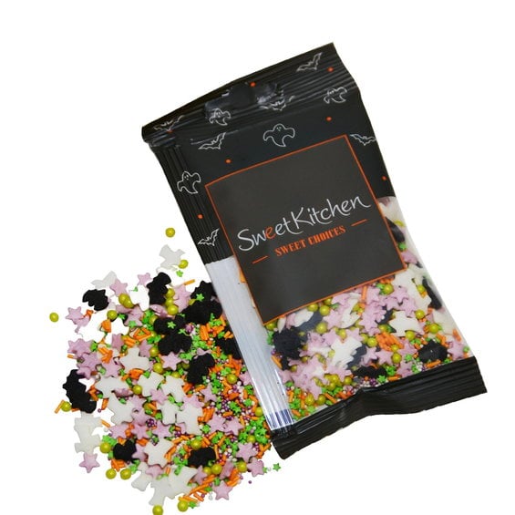 Halloween-strössel spöken & fladdermöss, dekorera kakor, tårtor och muffins. 40 gram