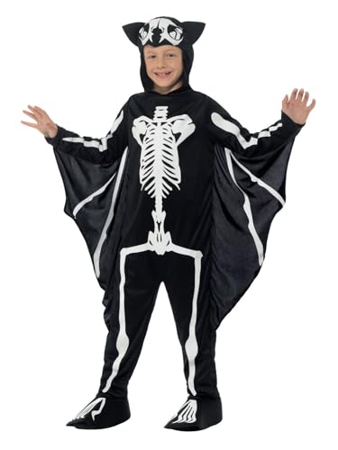 Halloween! Smiffys fladdermus skelett-kostym, svart, med huva jumpsuit och fästda vingar