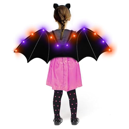 OPAHUTER Halloween fladdermusdräkt, lyser upp fladdermusvingar för barn, halloween, svart fladdermusvingar, fladdermus-dräkt, fladdermus-vingar för halloween, cosplay fest