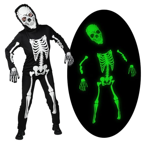 AYBUY Skelettdräkt för barn, halloween, självlysande skelett, jumpsuit, festskelettdräkt för barn, halloween, maskeraddräkt för halloween, bus eller godis pojkar och flickor, M, 5-6 År