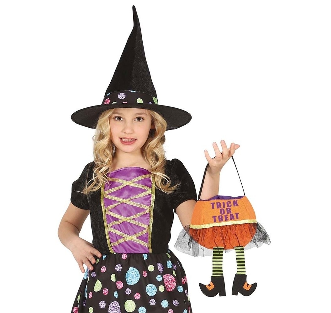 FIESTAS GUIRCA | Flerfärgad korg med pumpor och spöken (30 x 15 cm) - trick-or-treat-hink för Halloween och kostymfester - dekoration och tillbehör för barn och vuxna - flerfärgad