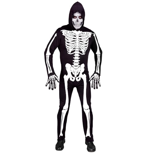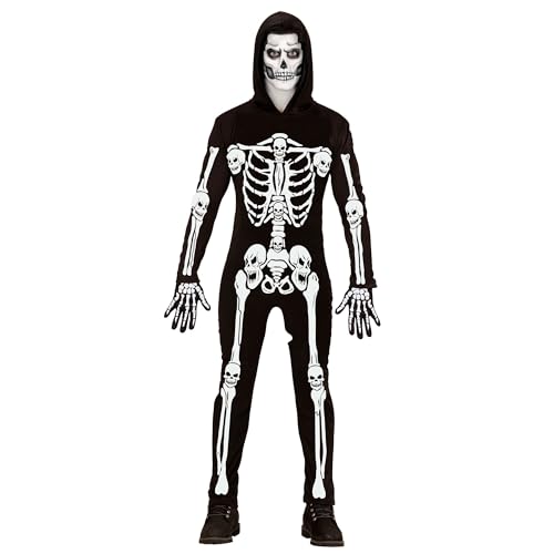 W WIDMANN MILANO Party Fashion Skelettkostym, overall med huva, fluo, lyser under UV-ljus, halloween-dräkt
