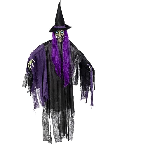 Boland 73092 – Hängande häxa, 146 cm, hängande dekoration för halloween med ljus, inklusive batterier, festdekoration, skräckdekoration för temafest