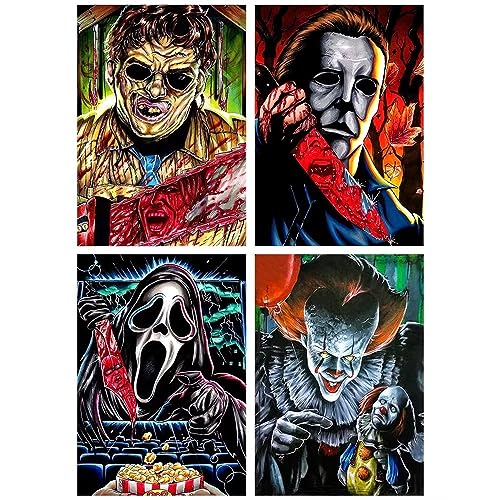 UNIQUORS Diamantmålningsbilder, vuxna, 4-pack clown, halloween skräck, diamantmålning, Michael Myers, full borr 5D diamantmålning, spökface, heminredning (30 x 40 cm)