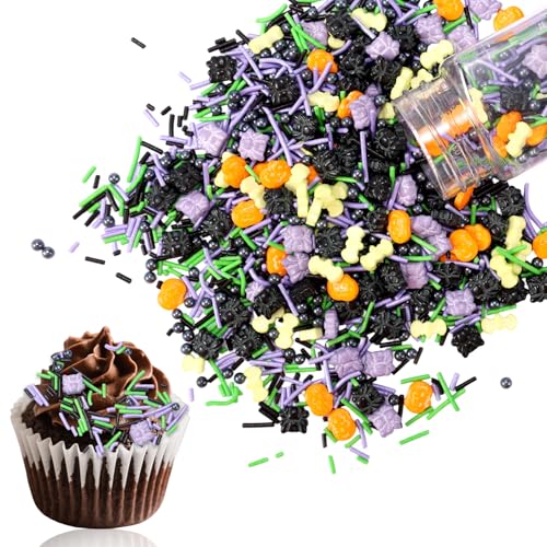Sinbana 100g Ätbart Halloween-Strössel, Halloween-Strösselmix Inklusive Spindel Fladdermus Pärlor Sockerkladdkakor för Temafest Tårtdekoration och Dessert(Blandad Stil)