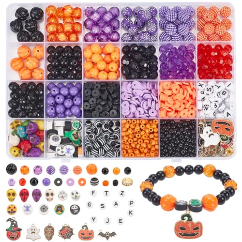 PH PandaHall 1383 Halloween-pärlor för att göra armband, vänskapsarmbandssatser med 24 akrylpärlor kit för halloween smyckestillverkning och hantverk