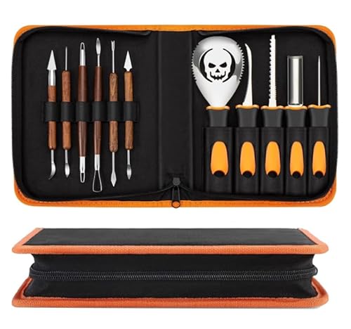 Occzin Halloween pumpa snideriset, 13 stycken rostfritt stål pumpasnideri med förvaringsväska, gör-det-själv dekoration pumpa snideri verktyg med bärväska (13)
