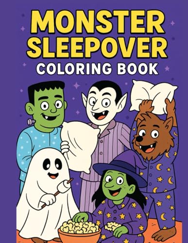 Monster Sleepover Coloring Book: Funny Halloween Monsters in Pajamas: A Hilarious and Highly Colorable Halloween Gag Gift for Kids, Teens, and Adults – 50 Unique Monster Sleepover Pages