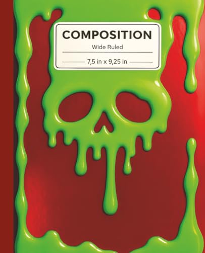 CUTE Composition Notebook Wide Ruled | Motivational Quotes on Every Page | Halloween Skull with Apple Green Slime & Burgundy Background | Spooky ... perfect as a GIFT | 7.5 x 9.25 | 120 Pages