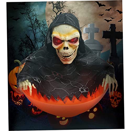 Halloween Candy Bowl, Skeleton Animerade Halloween -dekorationer med rörelseaktiverad sensor Screaming Skull Candy Holower Halloween Decor with Light Up Red Eyes