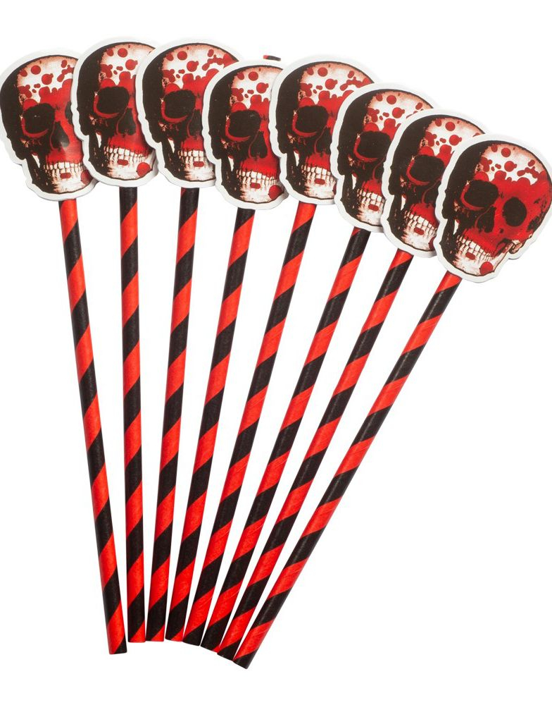 8 st Randiga papperssugrör med Bloody Skull - Blodig Halloween