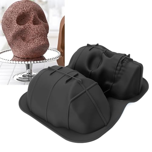 Halloween Tårtform, 3D Skull Silikon Skeletthuvud Choklad Godisformar Stor Skalle Non-Stick Bakning(Svart)
