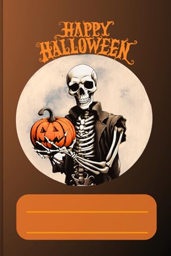 Happy Halloween Notebook, Skeleton, Skull, Pumpkin, Softcover Notebook Happy Halloween 2025, 120 lined pages